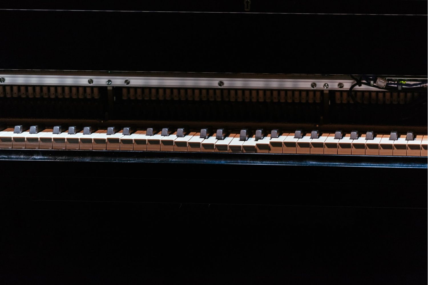 Clara Frühstück ist zwar „Solo on Stage“ – tritt aber immer wieder in Interaktion mit einem selbstspielenden Klavier (Bösendorfer Enspire) und elektronischen Zuspielungen.
