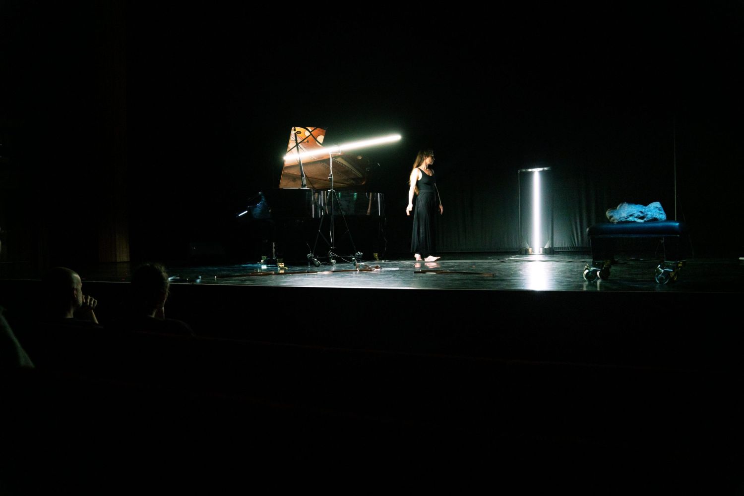 Das Setting ist frei begehbar, die musikalischen und performativen Elemente verteilen sich multidimensional über den Raum.